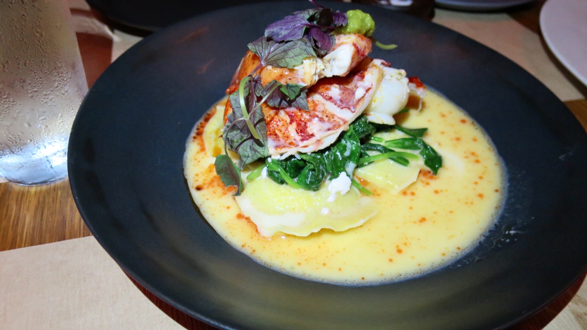 パダーロブスター。ロブスターの下にあるラビオリと一緒に食べると味わい豊か。