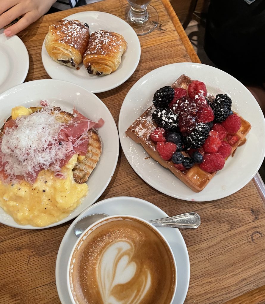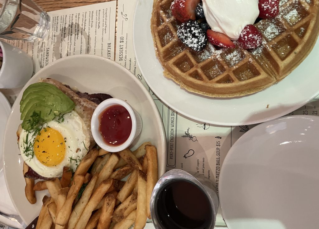 お店の看板メニューのオムレツとベリーワッフルを注文しました。