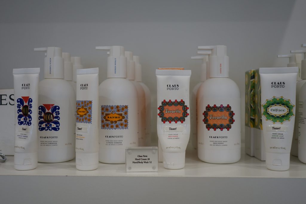 130年以上の歴史を誇るポルトガル生まれの老舗ボディケア&フレグランスブランドCLAUSPORTO(クラウスポルト)も販売していました。