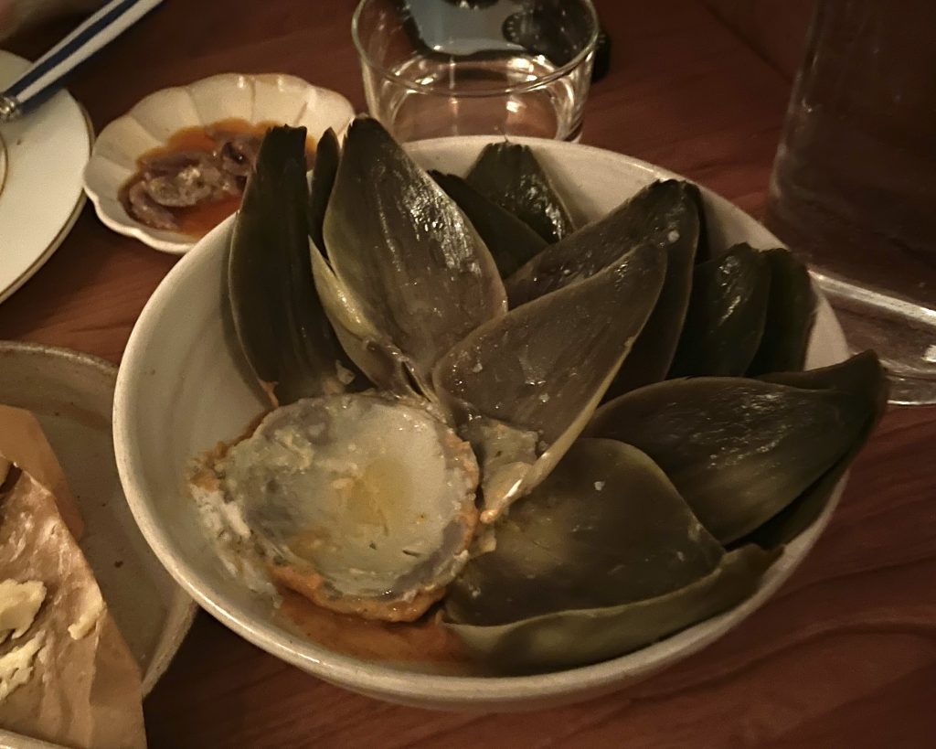 ワインとサワードウのパンとバターを買うこともできますが、こちらのバーは季節の料理がおすすめです。
