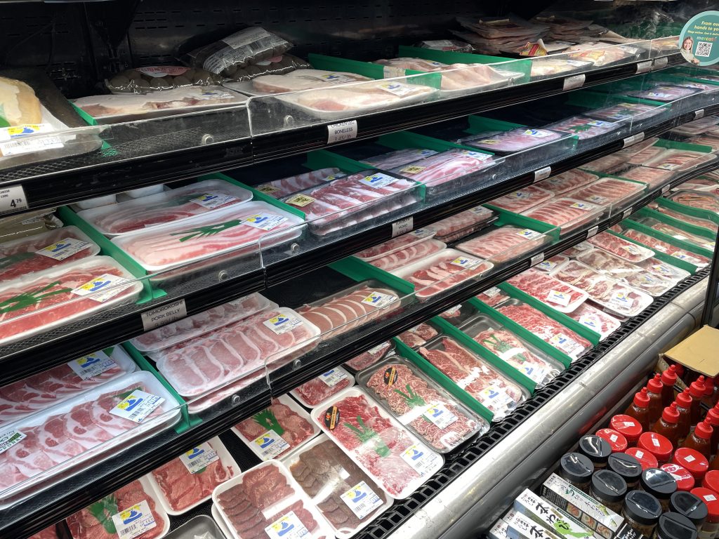 アメリカで簡単に手に入らない薄切り肉も充実した品揃えです。