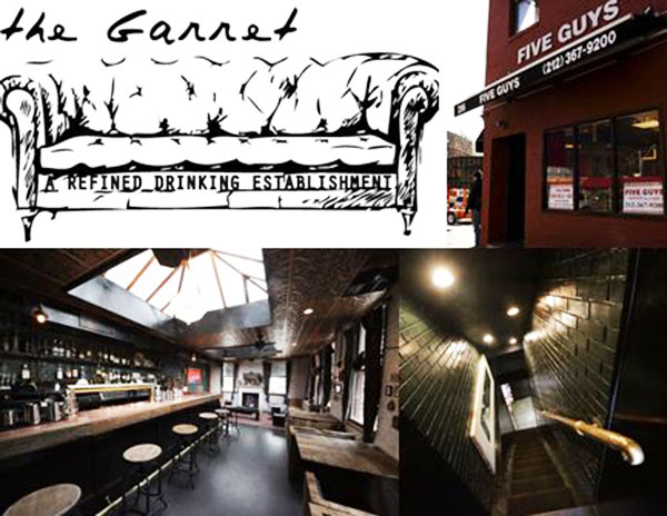ウエストビレッジのFIVE GUYSハンバーガーショップの2階にあるのが”The Garret”。