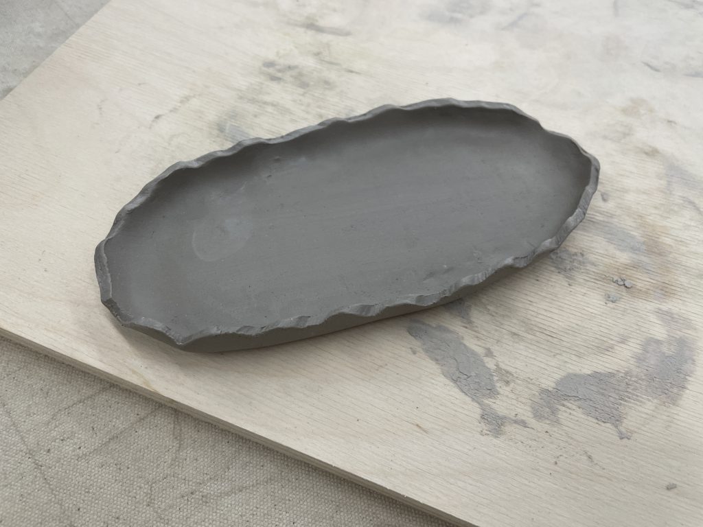 平らなお皿を作るので均等に土を伸ばしていきます。