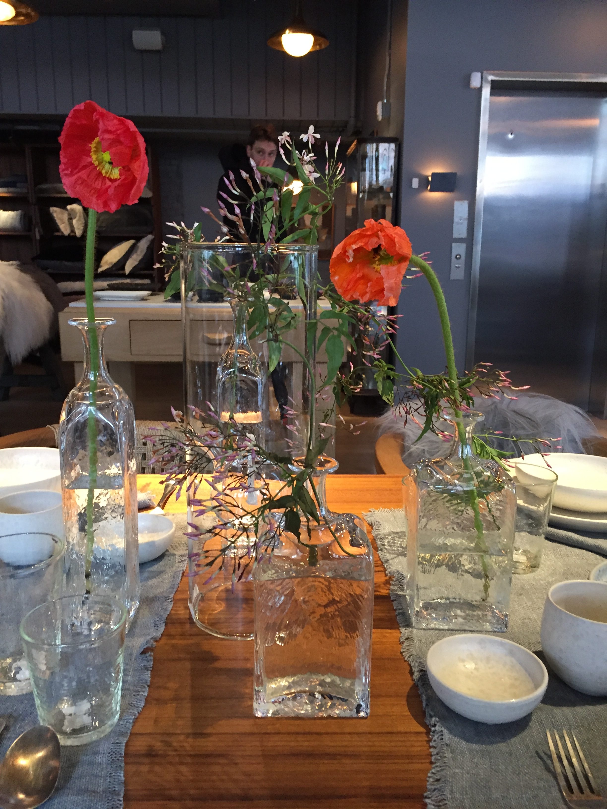 スイートピーが飾ってある花瓶は日本人女性デザイナーの作品だと店員さんが紹介してくれました。